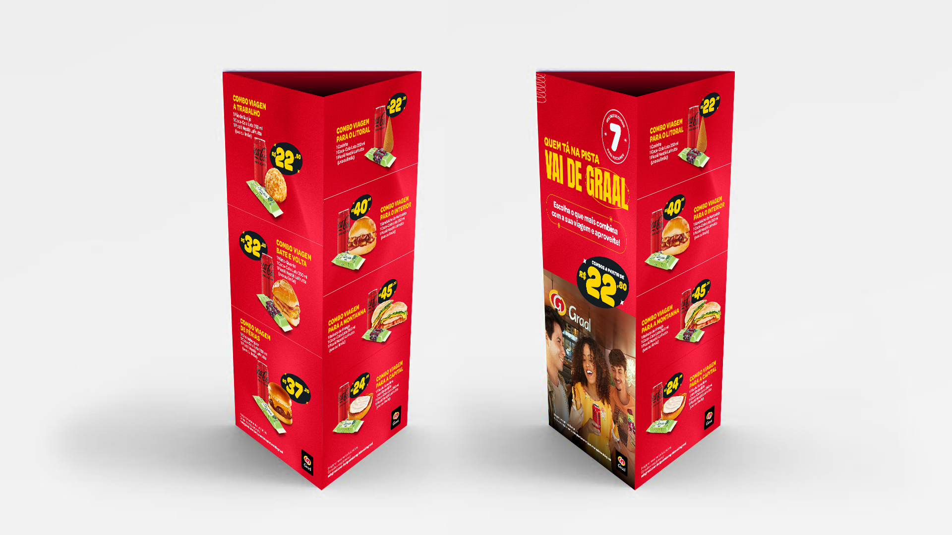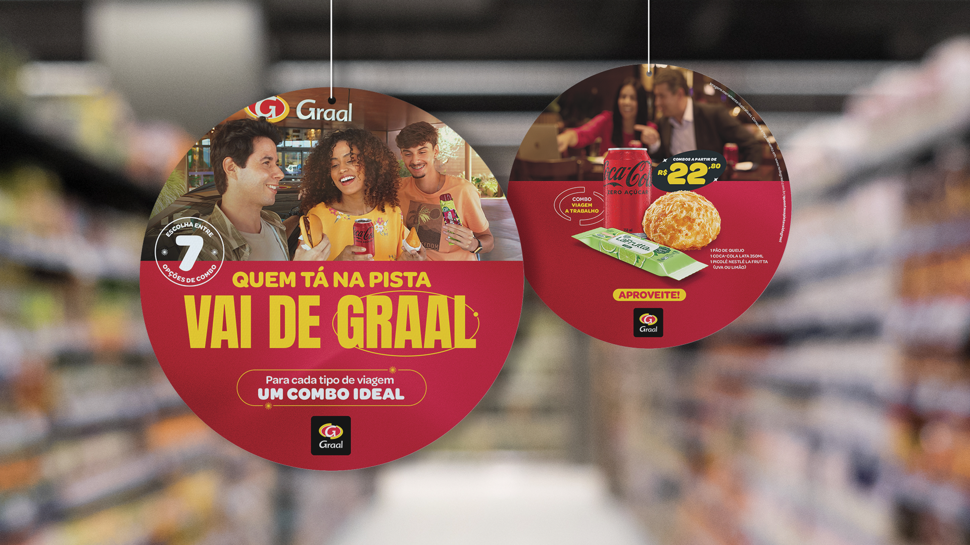 Com o objetivo de aumentar as vendas e o ticket médio nas unidades da Rede Graal através de uma campanha de promoção de preço, em parceria com a Coca-Cola e Nestlé, com foco em produtos complementares, desenvolvi 3 linhas e essa, foi aprovada e veiculada nas 53 unidades da rede.